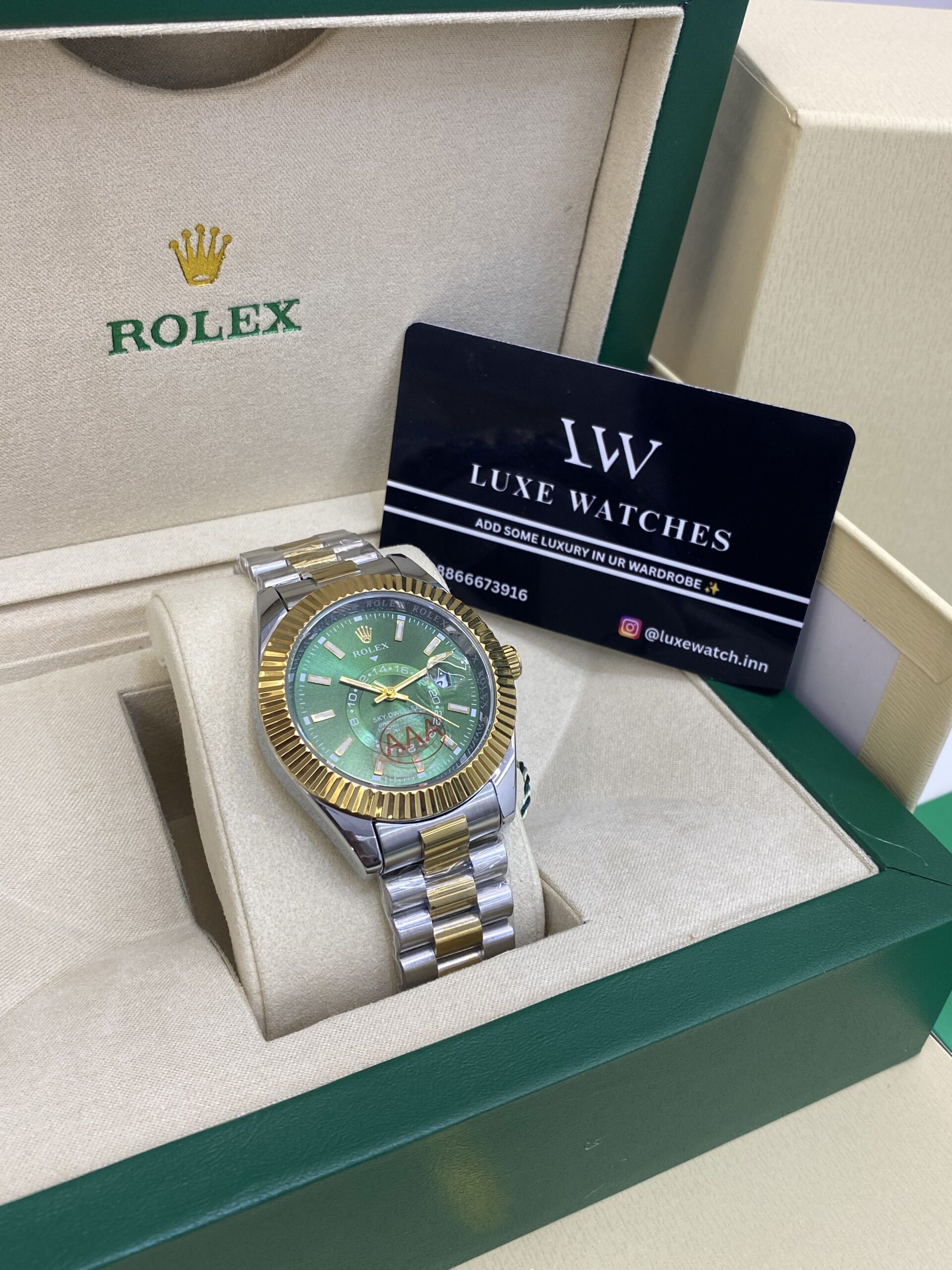ROLEX SKY DEWLLER DUAL TONE GREEN